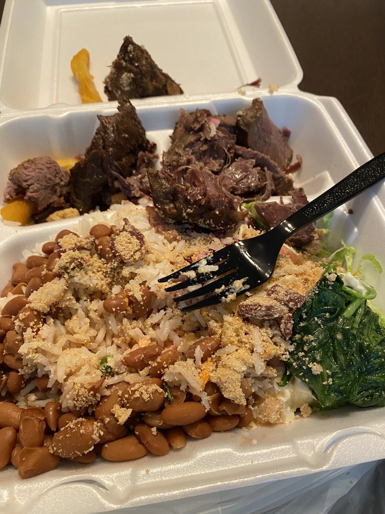 “ The only thing hold me back from a 5th star is the price for takeout. We are used to paying $16 for a to-go container that contains meat from the bbq... at this place they wouldn't make the to-go with the bbq so I had to make it myself (with much less food than the other places in Marlboro give) and it ended up costing way too much money. $30 for one small container of food is just ridiculous since most of it was rice and squash - I could've gone out for a decent steak dinner for this price. The woman cashing me out gave me some good advice - to have theme make the $12.99 to-go container and then make myself a bbq container and it should ended up costing me much less. The food is very good and very fresh. The staff was very friendly and attentive. The day I went in they had a beef with mushrooms, tilapia and shrimp stew, and fried tilapia as their buffet meat choices. This restaurant is not a typical restaurant. You do not get table service... and it is not rude that you don't. It is a serve yourself buffet only. They have a really nice outdoor patio you can chose to eat on and they also have a great bar area. This is a great addition overall to the area. ”